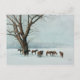 Esta postal muestra una reproducción de mi pintura acuarela original de caballos en la nieve en las Granjas de zapatos de Hanover.