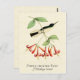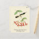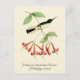 Tarjeta postal con un ilustracion vintage de historia natural de Antoine-Germain Bevalet, c.) Un colibrí verde y blanco con una cabeza azul-violeta perchada en una trompeta de coral rosa, con un fondo de textura amarillo claro de pergamino. Limpiado y mejorado digitalmente, conservando sus características vintage. Presenta nombres comunes y científicos en fuentes decorativas. Estampillas de franqueo de EE.UU. coincidentes disponibles.