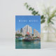 Una hermosa vista de los barcos y edificios de Aberdeen en Hong Kong impresos en una postal.