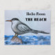 ¡Hola Desde La Playa! Personaliza tu nombre de playa en esta divertida postal que muestra una gaviota con linterna que ama la vida en la playa.