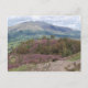Postal con foto de Blencathra caída / montaña con brezo morado en primer plano en el distrito inglés del lago, Cumbria, Inglaterra, Reino Unido