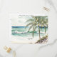 postal de boda de la playa de palmeras tropicales
