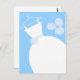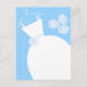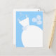 Postal de temática novia con un diseño de bonito en tonos azules y blancos con un estilizado vestido de boda en una percha acompañado de un ramo de flores. Un diseño de personalizable para que puedas personalizar con tu propio texto, imágenes e ideas.