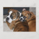 2 Cachorros de boxer tendidos uno al lado del otro. Uno tiene la cabeza sobre el otro. Demasiado lindo para las palabras.