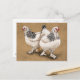 Postal con ilustracion de gallinas de pollo Brahma.