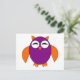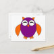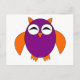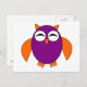Esta espeluznante postal de Halloween presenta una lechuza linda con los ojos cerrados como si estuviera durmiendo y con garras bonitas. Su cuerpo es morado y sus alas, orejas, garras y pico son naranjas. Este lindo búho es tan adorable que a los adultos les encantará tanto como a los niños.