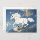 Medios mixtos. ilustraciones de galerías blancas de caballos a través de un cielo nublado (foto).