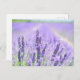 Esta postal muestra una foto de un campo de encantadora lavanda morada.