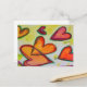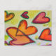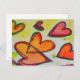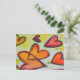 Los corazones rosados, rosados y naranjas sobrevuelan la pintura como hojas caídas sueltas atrapadas en la brisa. Un contorno verde traza cada corazón. Los puntos de color amarillo pálido son como el confeti entre los corazones. La pintura acuarela tiene una capa clara de oro y rosa encima. Personalizar esta postal con tu texto e imágenes personales!