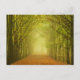 Postal con luz al final de un túnel de hayas a lo largo de un carril a través del bosque.
