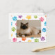 Comparta un poco de amor felino con esta encantadora postal de personalizable, que incluye la foto de su gato rodeada por un divertido borde de huellas de pata coloridas. Perfecto para enviar mensajes dulces, notas de agradecimiento, o saludos festivos a los amantes de los gatos. ¡Una manera divertida y sincera de mostrar a tu amigo!