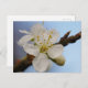 Postal con foto de cierre de la flor blanca del árbol de ciruela Victoria