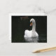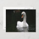 Esta postal muestra una fotografía de un hermoso cisne blanco con un pico naranja brillante. El cisne es un cisne mute (cignus olor) y fue fotografiado en el Reino Unido. Está deslizándose suavemente a través del agua y parece muy sereno.