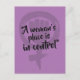 Postal de control para mujeres. Un lugar de mujer está en control.