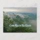 Punto de vista desde lo alto con vistas a las verdes colinas de Costa Rica bajo las nubes y el Pacífico azul más allá.