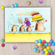 Desee a sus amigos o familia un feliz cumpleaños con esta linda tarjeta de erizo. Cuatro erizos corren de izquierda a derecha, cada uno trae algo para una fiesta de cumpleaños. El primero es llevar una torta gigante de cumpleaños con muchas velas quemadas, el segundo es traer un regalo, el tercero una flor, y el último es lanzar confetti. Esta carta es linda, colorida. Y a los niños les encantarán los adorables personajes animales.
