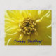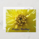 Saludos de cumpleaños, dahlia hortensis amarilla, macro