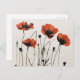 Postal de dibujo con tinta de las flores de amapol