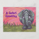 La postal del personalizable de elefantes de safari en Cute incluye un adorable personaje de paquidermo de nuestra línea de Desfile Animal parado en una sabana con un cielo rojo al atardecer pintado digitalmente por nuestro talentoso artista de libros para niños, Traci Van Wagoner (www.tracivanwagoner.com). ¡Por tu lado divertido! Vea cómo el tierno elefante va y viene con esta divertida obra de arte de la cabeza del hipopótamo en la parte delantera y la cola del hipopótamo en la parte trasera. Estos hacen grandes regalos para los amantes de los animales de safari y los amantes de los elefantes de todas las edades. Muestra tu lado divertido yendo y viniendo y recogiendo todo el juego de artículos de papelería para elefantes.