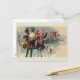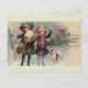 Diseñado por Susan Epps Oliver. Imagen vintage de Navidad de dos niñitas jugando bolas de nieve con su perro. El mensaje de la tarjeta es "Un Navidad alegre".