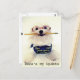 Studious Aolani usa sus lentes de lectura y suéter de perrito mientras escribe en su casa para darle a mamá y papá una actualización de sus estudios.