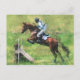 Un diseño de efecto de pintura al óleo hecho a partir de una foto de un caballo y jinete compitiendo en un evento de campo transversal.