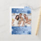 Postales de fotos de personalizados de la temporada de Greetings en el patrón de copos de nieve azul y blanco, elegante y simple con escritura elegante. Desee a su familia y amigos lo mejor de esta temporada de vacaciones con esta divertida postal.