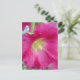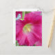 Postal con foto de la flor del hollyhock rosa con el interior amarillo