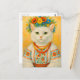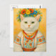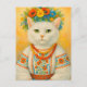 Postal de flor ucraniana de gato blanco
