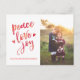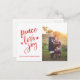 Modern Personalized Peace ama la postal de la tarjeta de fotos de la alegría del amor que incluye encantadora tipografía escrita a mano y corazones. ¡Deséenle a todos una Feliz Navidad con estilo!