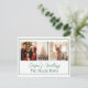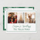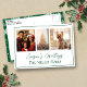 Celebra la temporada con un toque personalizado. Esta postal moderna de Navidades presenta un diseño elegante con un delgado borde verde que añade un toque de elegancia, mientras que la parte trasera muestra un estampado festivo de copos de nieve sobre un verde esmeralda exuberante, evocando los pensamientos de nieve en los árboles. Lo que hace que esta tarjeta sea realmente especial es su capacidad de ser completamente personalizada. Sube tus fotos familiares favoritas, prepara tu propio y sincero saludo de vacaciones, y agrega tu nombre familiar para hacer que esto sea único tuyo. Ya sea que estés compartiendo recuerdos alegres o enviando cálidos deseos, esta tarjeta postal te permite hacer una impresión duradera.