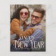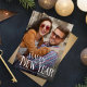 Desee a su familia y amigos un feliz año nuevo con estas postales de moda. El diseño presenta el guión tipográfico ''feliz año nuevo'', una foto y el mensaje en la parte posterior.