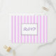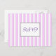 Postales de respuesta RSVP personalizado con un sencillo patrón de fondo rayado de rosa claro y oscuro en blanco con escritura personalizado y letras de bloque. Haga clic en Personalizar para cambiar las fuentes, el tamaño, los colores de fondo y mucho más, e incluso guarde el diseño para más adelante.