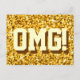Postcard con un diseño moderno con estrellas diseminadas sobre un estilizado fondo de "secuin look" y "OMG!" en tonos amarillos y marrones. Se puede usar como fondo para tu propio texto, imágenes e ideas. Tenga en cuenta que se trata de una imagen de arte digital impresa, que no brilla ni contiene purpurinas o secuencias reales.