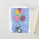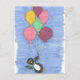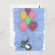 Perfecto para todo tipo de ocasiones, esta original postal presenta un ilustracion de un pingüino volando a bordo de un montón de globos. ¡Qué lindo!