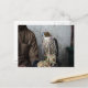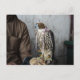 Postal de un halcón con los ojos vendados usado para la cetrería en la zapata de un halcón en Doha, la capital del país del Golfo, Qatar.