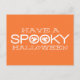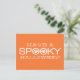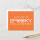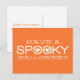 Typografía simple y moderna Spooky Halloween Greeting Postcard en naranja y blanco con un diseño de texto genial con dos fantasmas extravagantes mirando a través de la palabra "Spooky". Esta elegante postal es una excelente manera de desear a sus amigos y familiares un Feliz Halloween. Fácil de personalizar, añade tu propio texto espeluznante! Haga clic en el botón "Personalizar" para mover el elemento de diseño, cambiar los tipos de letra o los colores del texto y agregar o eliminar texto adicional.