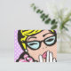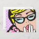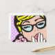 ¡Esta postal de historietas de la Personalizable La-Di-Da Lady es brillante! El diseño presenta a una mujer deliciosamente peculiar con el pelo rubio apilado en la cabeza con gafas de ojos de gato y un collarín de cebra rosa y blanca. Una mano guante blanca descansa sobre sus labios rosados como si estuviera reprimiendo una risita. La mujer está en un fondo de lavanda y punto de polka blanco. ¡Es la postal perfecta para enviar personas que compartan sus chistes internos!