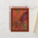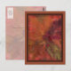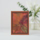Una colorida disposición de hojas y bayas otoñales sobre un suelo de yeso rojo llena la parte delantera de esta postal. En diferentes tonos amarillos, naranjas, violetas, rojos y verdes, esta imagen de bonito tiene una calidad suave y nebulosa que da el efecto de mirar a través del vidrio empañado. La imagen tiene un borde biselado y está rodeada por un borde violeta profundo y un borde naranja más amplio quemado fuera de él. La parte posterior de la tarjeta está llena de una versión más ligera y sutil de la misma disposición de la hoja. De mi imagen original creada digitalmente. com