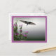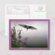 Esta tarjeta muestra una fotografía única de un colibrí sobrevolando una flor.