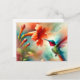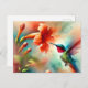 Notecard con una pintura acuarela abstracta de un colibrí de pechos rojos que se acerca a una vibrante flor de vid de trompeta. Las pinceladas dinámicas y los ricos colores capturan la belleza y la energía de la escena.