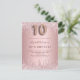 Una invitación moderna, elegante y glamurosa para una fiesta de cumpleaños número 10 de los chicas. Un rosa polvoriento, color rosa falso metálico con un falso goteo purpurina, pinta goteante. El nombre está escrito con un guión moderno de estilo con letras de color rosa oscuro y dorado. Personalice y agregue los detalles de su fiesta. El número 10 se escribe con un tipo de letra, guión. Parte posterior: fondo polvoriento rosa, diseño postal. Sugerencia: Si no desea que se vea como una postal, haga clic en personalizar, vaya a la parte posterior y quite el separador y el sello postal.
