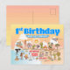 La luminosa y encantadora postal del primer cumpleaños ofrece una vista espectacular del sur de California - los personajes silvestres disfrutan del cálido sol de California mostrando los parques de Los Ángeles, el Condado de Naranja, San Diego, Santa Barbara, Riverside, Palm Springs, El Centro, Anza Borrego y Joshua Tree, así como las ciudades fronterizas de Tijuana, Tecate y Mexicali.
