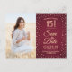 Postal De Invitación 2 Photo Quinceanera Burgundy Gold Save the Date