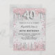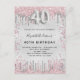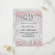 Una invitación moderna, elegante y glamurosa para un fiesta de 40 años. Un fondo falso plateado, decorado con polvo rosa y falso purpurina plateado. Personalice y agregue su nombre y detalles del fiesta. El número 40 se escribe con un tipo de letra, guión. Retroceso: fondo falso plateado, diseño postal. Sugerencia: Si no desea que se vea como una postal, haga clic en personalizar, vaya a la parte posterior y quite el separador y el sello postal.