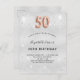 Una invitación moderna, elegante y glamurosa para una fiesta de cumpleaños número 50. Un fondo falso plateado, decorado con polvo purpurina. Personalice y agregue su nombre y detalles del fiesta. El número 50 está escrito con un tipo de letra, guión, estilo de globo de oro subió. Sugerencia: Si no desea que se vea como una postal, haga clic en personalizar, vaya a la parte posterior y quite el separador y el sello postal.