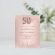 Postal De Invitación 50.º rosa de cumpleaños purpurina de oro rosa