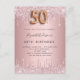 Postal De Invitación 50.º rosa purpurina de cumpleaños con polvorientos