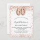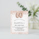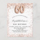 Por un elegante cumpleaños número 60. Un fondo blanco. Decorada con oro rosa, purpurina falso rosa y chispas. Personalice y agregue un nombre y detalles del fiesta. El nombre está escrito con un guión de estilo con letras a mano, número 60 con fuentes de estilo globo.