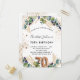 Para una fiesta de cumpleaños número 70. Un fondo blanco decorado con vegetación eucaliptos y hojas doradas. Lugares purpurinas de imitación dorada. Personalice y agregue sus nombres y detalles del boda. Letras de color negro y dorado. El número 70 se escribe con el tipo de letra de estilo globo. Parte posterior: fondo blanco y puntos purpurinas falsos dorados, diseño de postales. Sugerencia: Si no desea que se vea como una postal, haga clic en personalizar, vaya a la parte posterior y quite el separador y el sello postal.